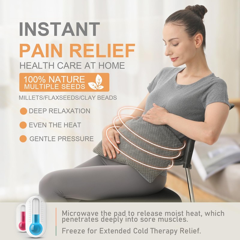 - KEEP WARM, FEEL GREAT: Our heat pack is generously filled with all-natural, unscented ingredients: millets, flaxseeds, clay beads and corncob. Together, they deliver long-lasting heat perfect for soothing cramps, sore muscles, and stress. It's also a fantastic aid for menstrual discomfort