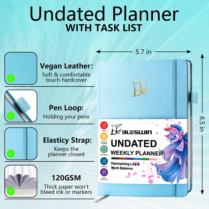 - 📙📙Efficient Organiser Notebook Planner Overview: BLESWIN UNDATED planner notebook includes Quick Reference Information, Password Note, Contacts, Undated monthly pages and Weekly pages, Note pages for taking notes. NOTE: Monthly & weekly sections are separated, the front has monthly calendars first and then go into the weeks.