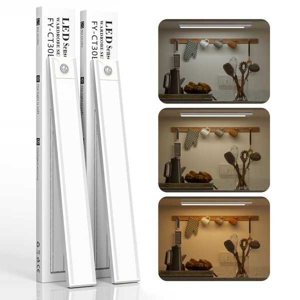 Under Cabinet Lighting, Motion Activated Under Cabinet Lights, LED Rechargeable Battery Operated Motion Sensor Light Indoor Magnetic Dimmable Wireless Closet Lights for Kitchen Steps, 15.7 inch 2PACK
