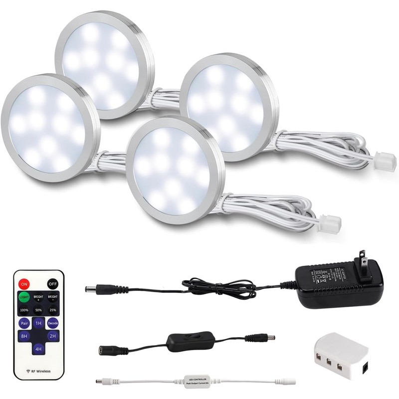 - Convenient: By using the remote control, the led pucks can be used for dimming from 0% to 100%. You can control the led under cabinet lights freely,what is more, the controller is able to remember your last setting of light mode.