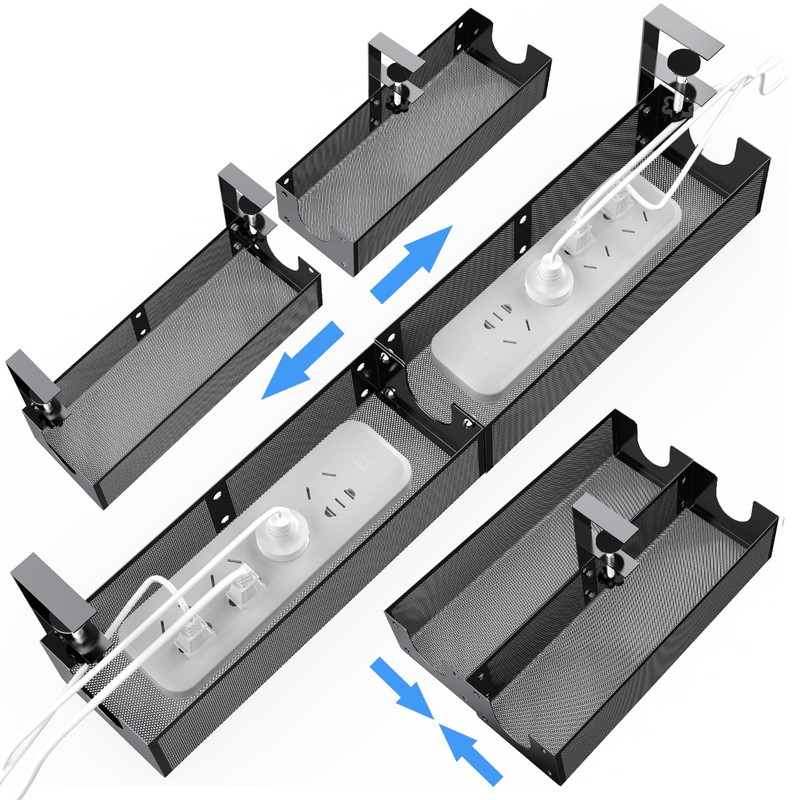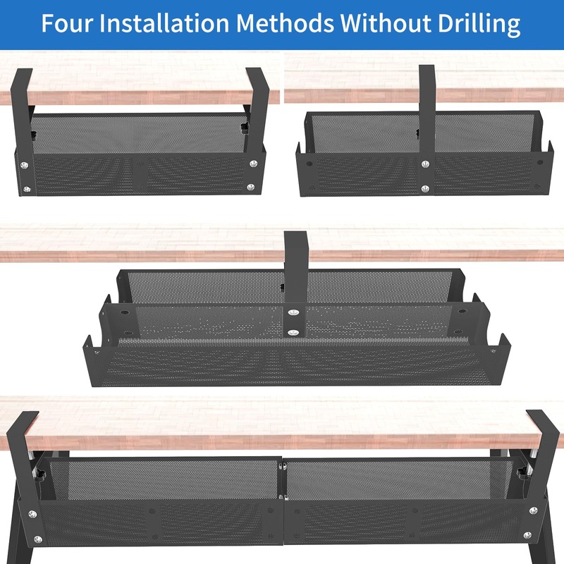 - NO NEED TO DRILLING HOLES: Instead of damaging to your desk, our under desk cable management tray can be hanged directly to desk frames and change its position easily as you like, unlike others screw installation. Perfect to install with clamp on the any wood, glass, or any material of your desk.