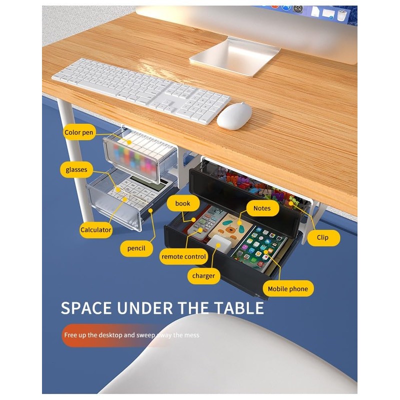 - * Smart Space Optimization - This innovative under desk drawer transforms unused space into valuable storage real estate. The double-layer design maximizes organization while keeping your desktop clean and clutter-free. Perfect for home office, study areas, or any workspace.