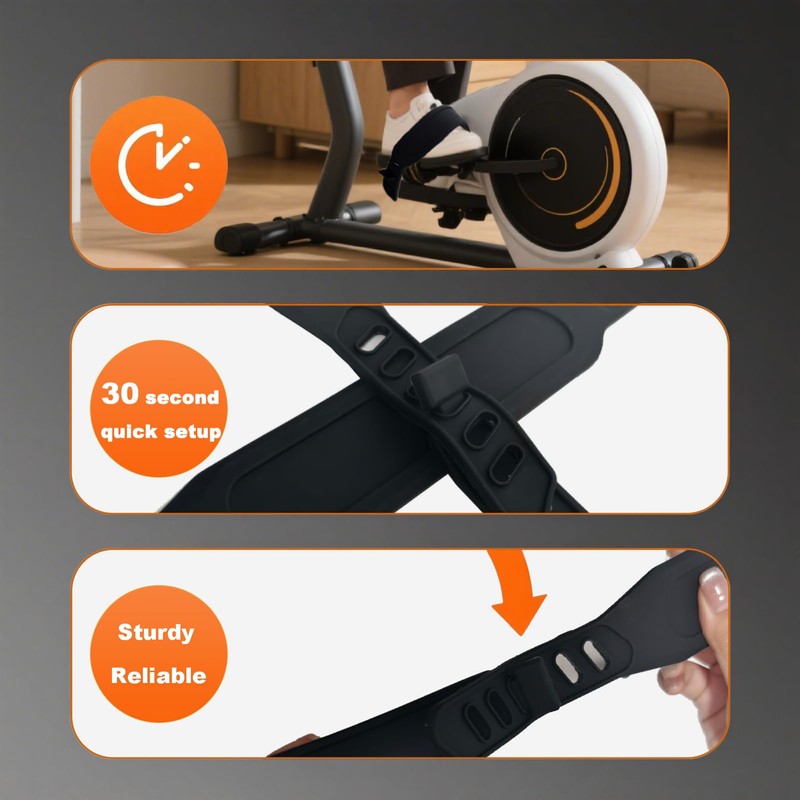 - ✅ Adjustable & Universal Fit:Stretchable elastic bands and multiple hook-and-loop fasteners accommodate all foot sizes (men’s US 6-13 / women’s 7-14) and fit most under-desk ellipticals, ensuring a snug yet comfortable grip.