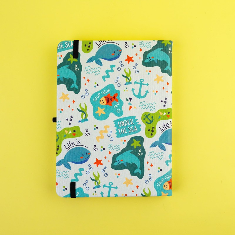 Under The Sea B6 160gsm Dotted Journal Hard Cover Notebook With Inner Pocket Pen Loop