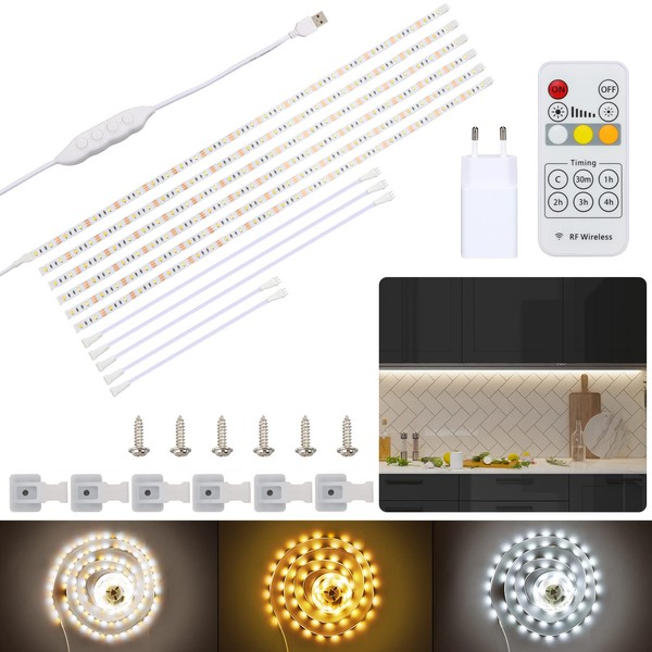 Under-Unit Light Kitchen LED, Meiyue Under Cabinet Lighting Kitchen, 6 x 50 cm LED Kitchen Under-Unit Light, Dimmable, LED Light Strip, LED Under-Unit Light, DIY LED Strip with RF Remote Control &
