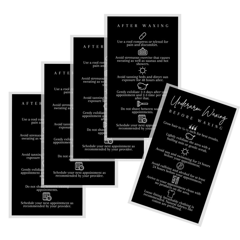 Underarm Waxing Before & Aftercare Card | 50 Pack | 2x3.5” in Business Card | Waxing Supplies | Underarm Waxing Cards for Waxing Providers using Hard or Soft Wax | Black Card Design