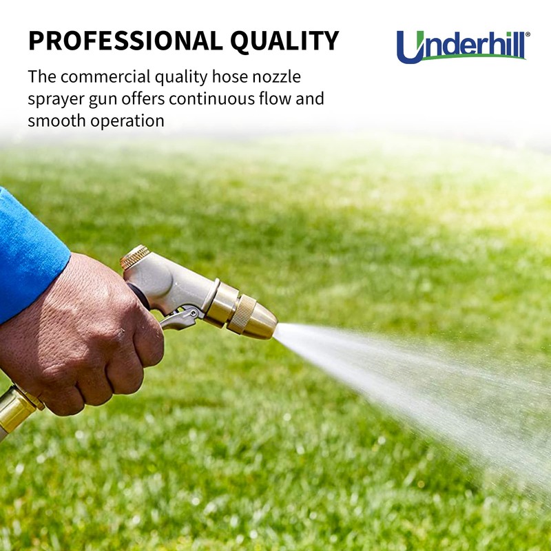 Underhill Prospray Gold Series Garden Water Hose Gun Nozzle Sprayer Head, 3/4-Inch Thread Inlet, Jet Attachment, Heavy-Duty Metal, Adjustable, NG200-P