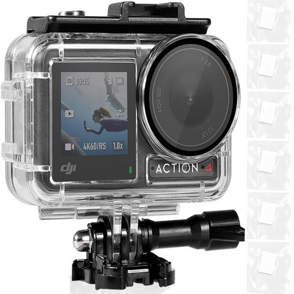 - 【Package Content】1 x Waterproof Case, 1 x Action Camera Adapter Base, 1 x Screw, 6 x Anti-fog Blade.