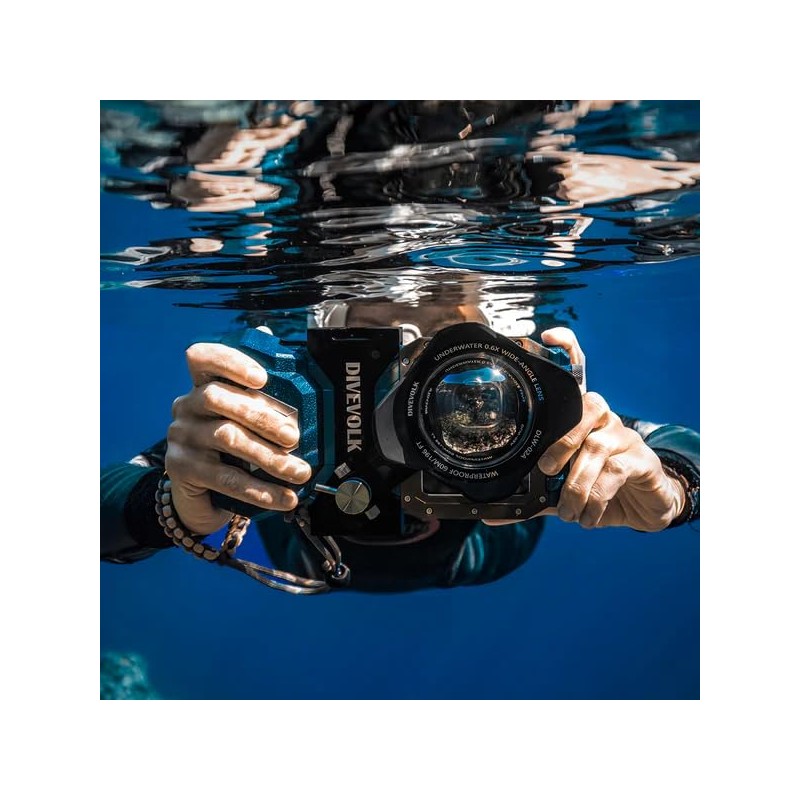The Underwater 0.6x Wide-Angle Conversion Lens is a powerful tool designed to enhance your underwater photography experience. It features impressive distortion correction capabilities, particularly beneficial for ultra-wide smartphone lenses, while also magnifying your view underwater. This versatile wet lens can be easily installed or removed while underwater, allowing you to switch between different lenses without hassle. With its universal 67mm thread mount, the wide-angle lens is also compatible with various compact camera housings, making it an excellent option for those looking to expand their photography options. Whether you’re capturing marine life or stunning underwater landscapes, the DIVEVOLK 0.6X Wide-Angle Conversion Lens elevates your imaging possibilities and helps you create visually striking content. Model # DLW-02A Lens Construction: 2 groups, 2 elements Working Depth: 60m/ 196ft Underwater FOV: 0.6x magnification Mounting: M67 thread mount Dimension: 115x102x34 mm Lens Material: Polycarbonate dome lens with hard coating, anodized aluminum Weight: 120g (On land)/5g (Wnderwater)