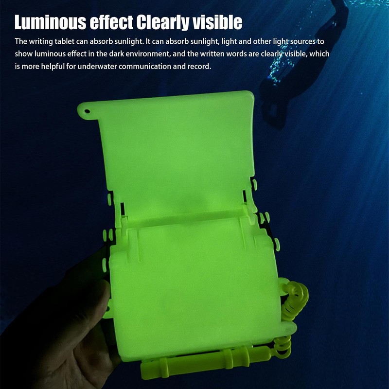 - Glow-in-The-Dark Feature: Designed to absorb light from various sources, this diving writing board glows in the dark, ensuring clear visibility for efficient underwater communication and precise record-keeping even in dim environments