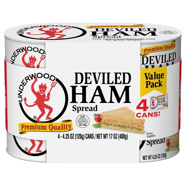 Looking for a little spice in your sandwich or appetizer party tray! How about a new way to spice up your egg breakfast? Canned Underwood Deviled Ham Spread is the choice for you! Underwood Deviled Ham has been loved by American consumers since 1868, traveling with you on camping trips, going with you to college and being your go-to sandwich meat or snack. Our fans are loyal because all Underwood spreads are made from premium quality meats to give you the flavor you savor and trust. Varieties of Underwood meat spreads include deviled ham, white meat chicken, roast beef, corned beef and liverwurst. Choose the devil you know for delicious sandwiches, dips, omelets and more! Underwood - America's favorite sandwich spread. They're delicious!