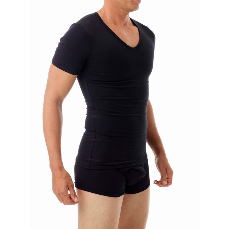 Underworks Mens Cotton Concealer Compression V-Neck T-Shirt Top, Small, Black