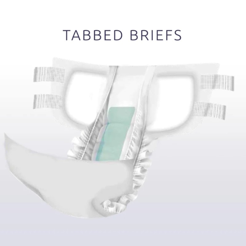 • EASY TO USE: Our absorbent diaper-style tabbed briefs are designed with four adhesive tabs, making changes a breeze whether you're sitting, lying down, or standing.