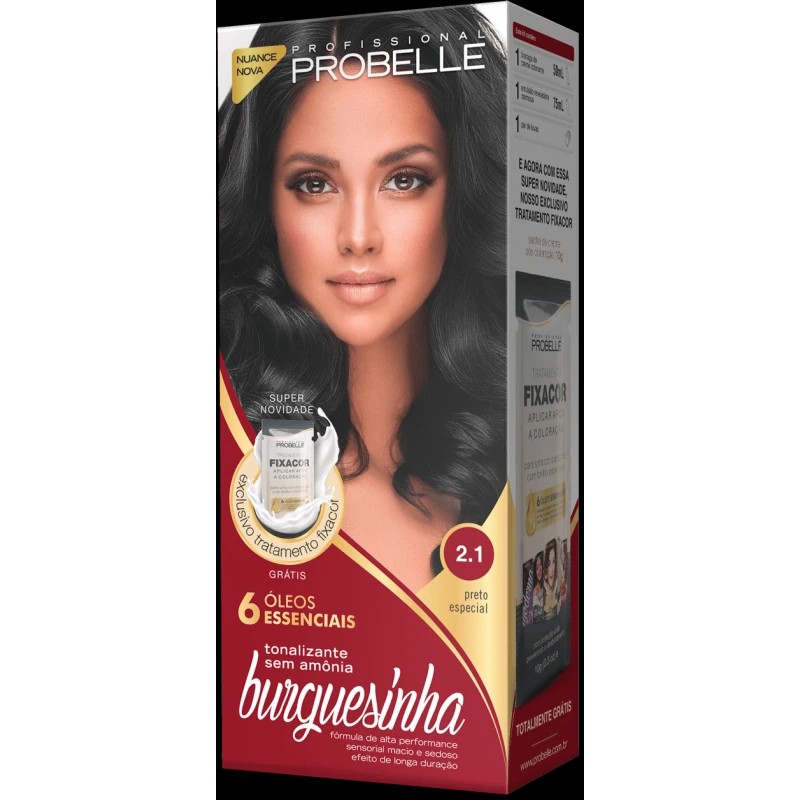 Nossa linha de tonalizantes sem amonia e com seis oleos essenciais chegou para dar vida e cor aos seus cabelos e trazer de volta a sua autoestima, deixando seus fios saudaveis, com brilho e movimento e, claro, o tom dos sonhos, muito mais vivo e por muito mais tempo. Sua formula extremamente eficaz fortalece a proteina natural dos fios enquanto tonaliza os fios, alem de retardar o desbotamento. A Burguesinha veio para ser sua melhor aliada. Inclui: 1 bisnaga de creme colorante (50 ml), 1 emulsao reveladora cremosa (75 ml) e 1 par de luvas.