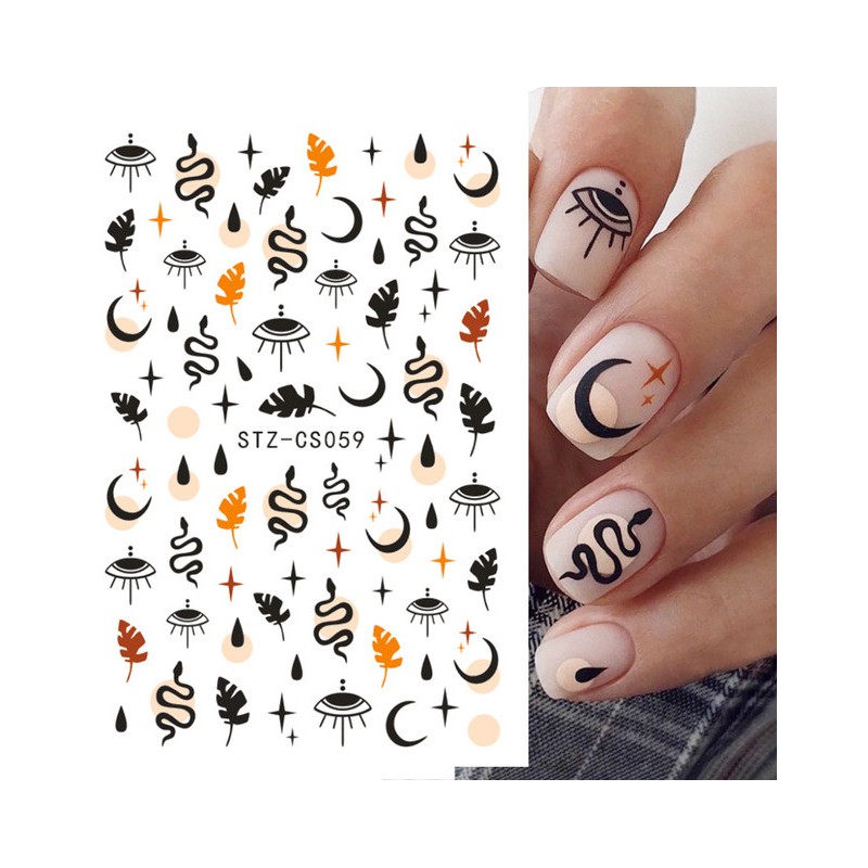 Undisclosed Women Abstract Lady Face Nail Decals Black Snake Evil Eye Moon Leaf Sticker NS7