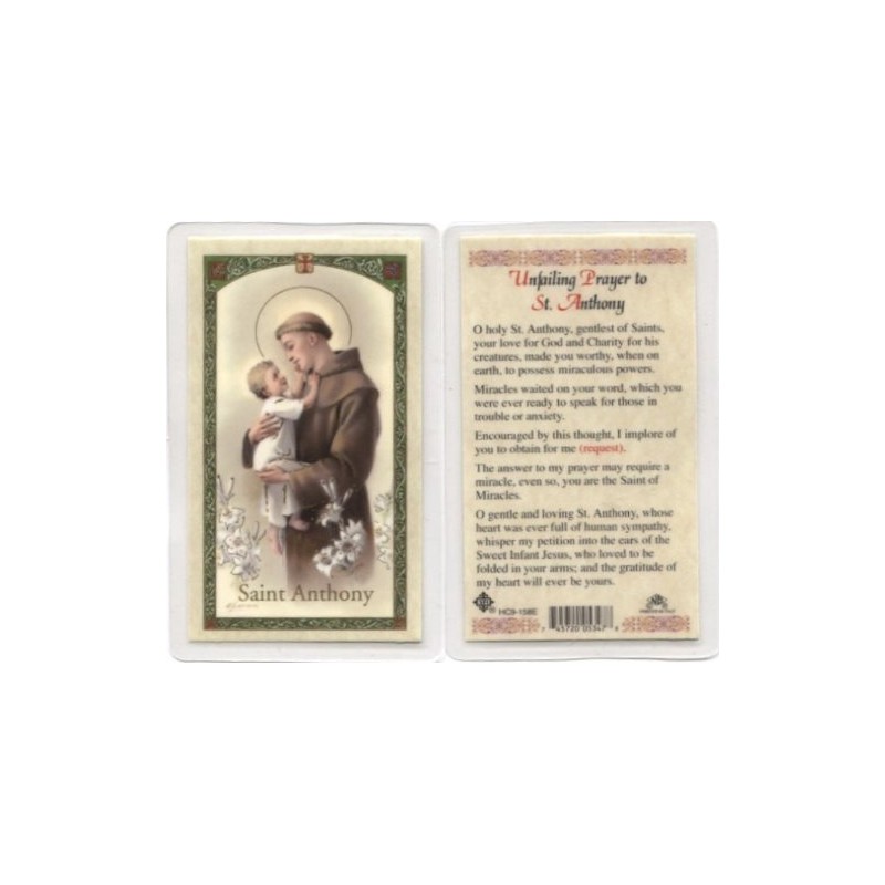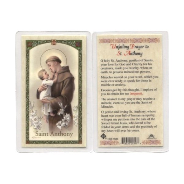 UNFAILING PRAYER TO SAINT ANTHONY. Laminated 2-Sided Holy Card (3 Cards per Order)