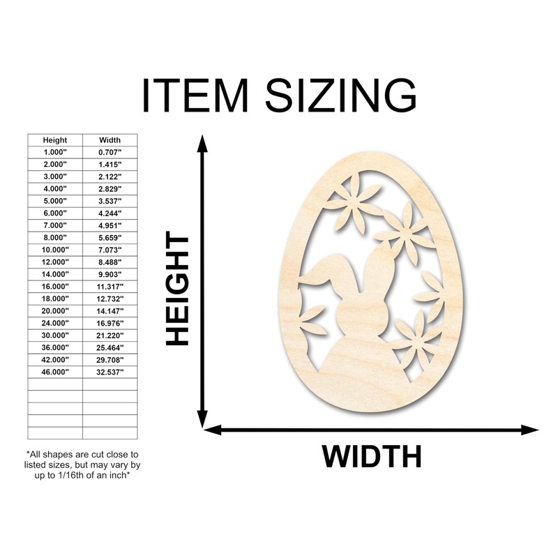 Unfinished Wood Easter Bunny Flower Egg Shape Easter Craft up to 46" DIY 3" / 1/8"