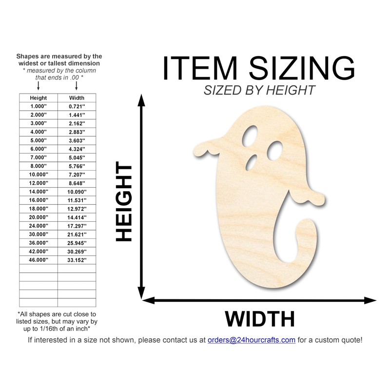 Unfinished Wood Ghost Shape | Craft Cutout | up to 46" DIY 10" / 1/8"