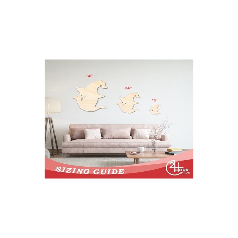 Unfinished Wood Witch Ghost Shape Craft up to 46" 4" / 1/2"
