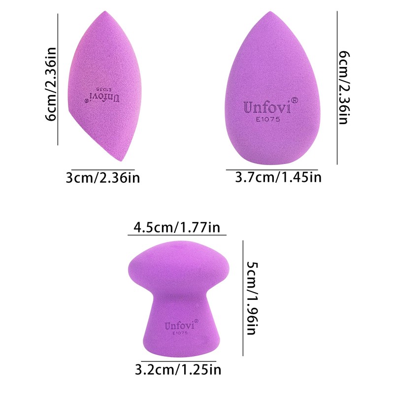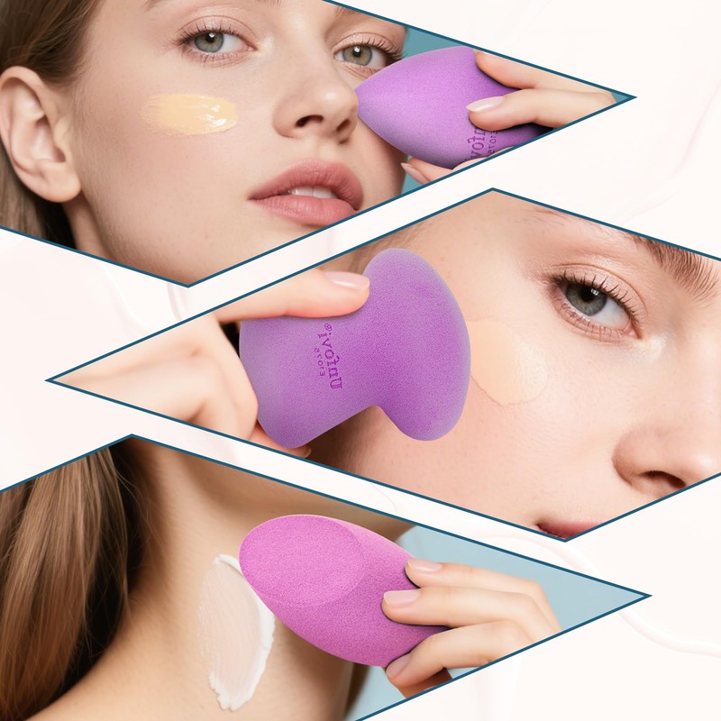 - Professional-Grade for Flawless Coverage: This 3-piece makeup sponge set can meet full-face application with the unique shapes, Rounded triangle for quick foundation coverage, Mushroom head for seamless contour blending, and Angled tip to target hard-to-reach areas like under-eyes. The cosmetic sponges can achieve a flawless makeup finish with liquid foundation, cream, or powder formulas.