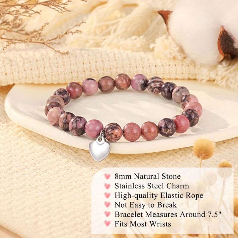 - 【Material】-- Our bracelet is made of 8mm natural stone and stainless steel heart charm. Hypoallergenic and lead-free & nickel-free, no harm to your skin. Suitable for daily wear and any occasion.