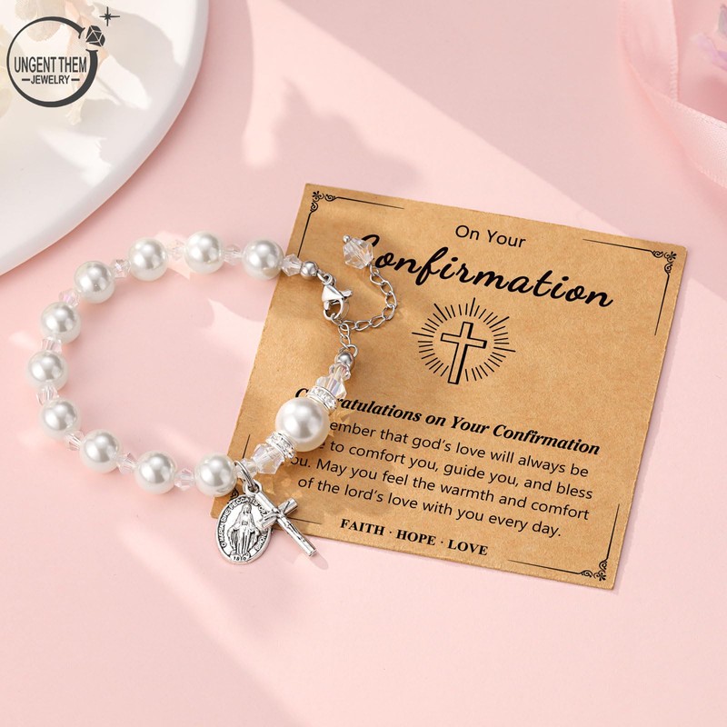 UNGENT THEM Confirmation Gifts for Teen Girls Teenage Girl Catholic Rosary Cross Bracelet Confirmation Sponsor Christian Easter Religious Gifts for Girls