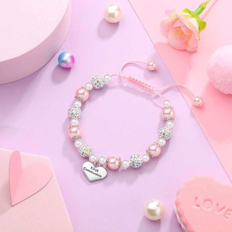 - 【Happy Communion Bracelet】 -- Congratulations on your first communion. This beautiful bracelet is a meaningful gift for the girl's first communion and and your little girl is going to love this cute pearl charm bracelet!