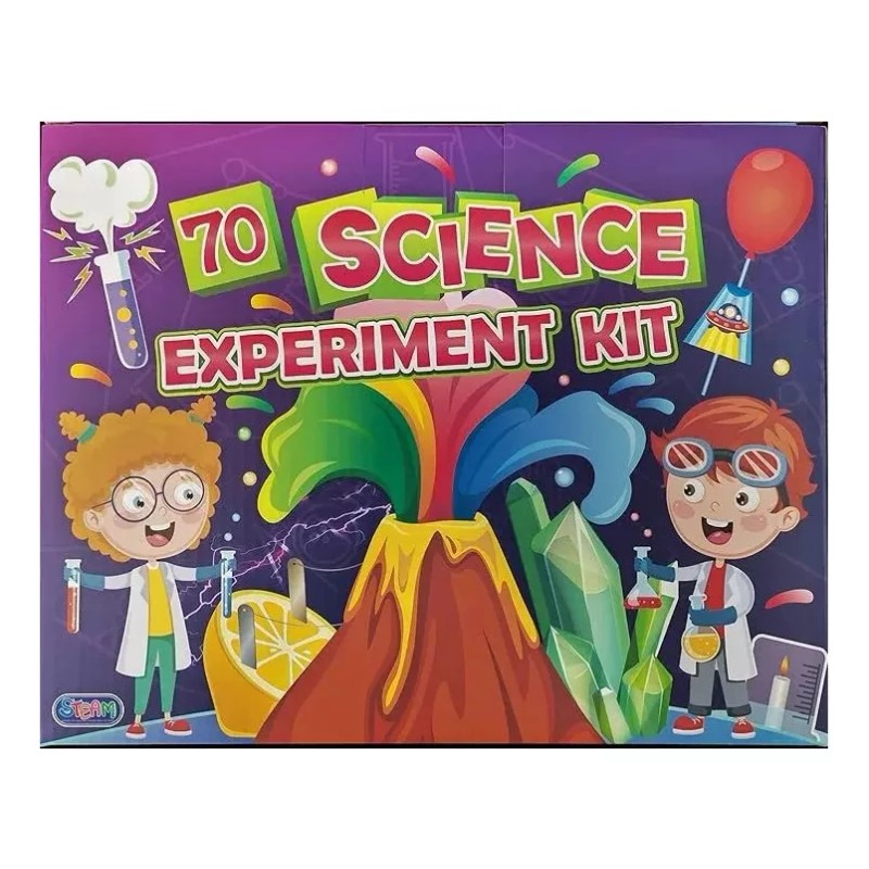 Un total de 70 experiencias: construye y erupta un volcán, cultivo de cristal, cohete de globos, circuitos de frutas y causa algunas reacciones químicas impresionantes.