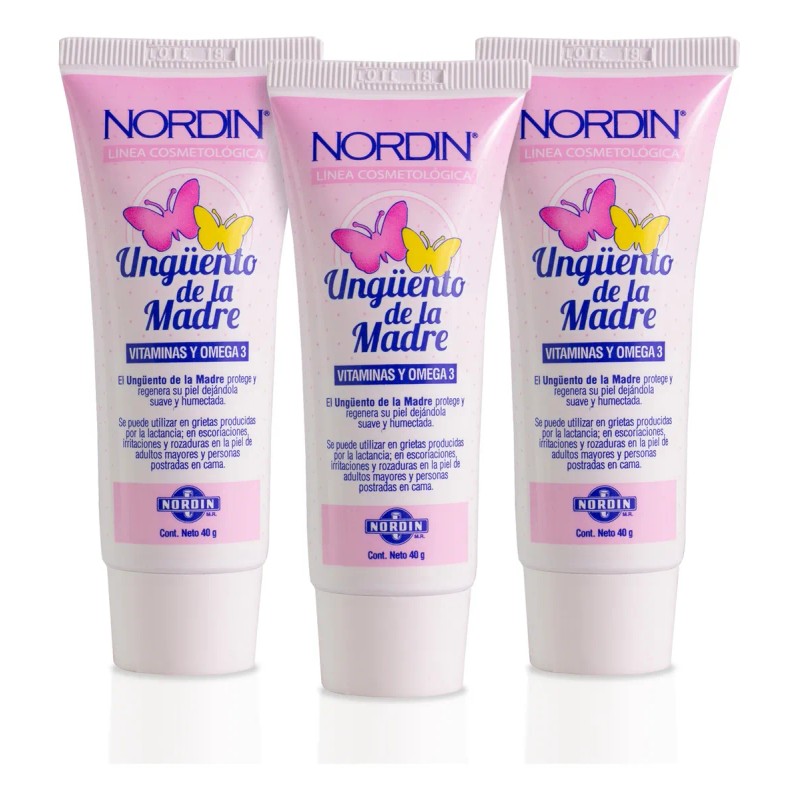 Descubre los beneficios del Ungüento de la Madre, un producto cosmético diseñado para regenerar y mantener tu piel suave y humectada, gracias a su fórmula enriquecida con Vitaminas y Omega 3 El Ungüento de la Madre es el suave alivio para las mamás, se puede utilizar en grietas producidas por la lactancia. Además de sus beneficios para las madres lactantes, el Ungüento de la Madre es para tratar escoriaciones, irritaciones y rozaduras en la piel de adultos mayores y personas postradas en cama. Estas condiciones pueden causar incomodidad y complicaciones adicionales si no se tratan adecuadamente. La fórmula del Ungüento de la Madre incluye ingredientes de alta calidad como vaselina sólida, óxido de zinc, lanolina anhidra y aceite de hígado de bacalao, una fuente natural de Vitamina A y Omega 3. Otros ingredientes clave como: tintura de benjuí, alcohol cetoestearílico, Vitamina E acetato, dióxido de silicio, fragancia y alantoína, cada uno con propiedades específicas que contribuyen al ungüento de la madre. El práctico tubo de 40 g del Ungüento de la Madre podrás llevarlo contigo a cualquier lugar. Ya sea en casa, en el trabajo o de viaje, este ungüento protege y regenera tu piel, dejándola suave y humectada. Para usar el Ungüento de la Madre, simplemente aplica una capa delgada en las zonas irritadas o afectadas. En el caso de grietas por lactancia, asegúrate de lavar la piel antes de amamantar. Este ungüento es un producto para el cuidado del cuerpo y debe usarse con precaución. En resumen, el Ungüento de la Madre es una opción confiable para el cuidado de la piel. Su fórmula rica en Vitaminas y Omega 3, combinada con ingredientes naturales, asegura una protección y regeneración óptimas, dejando tu piel suave, humectada y saludable.
