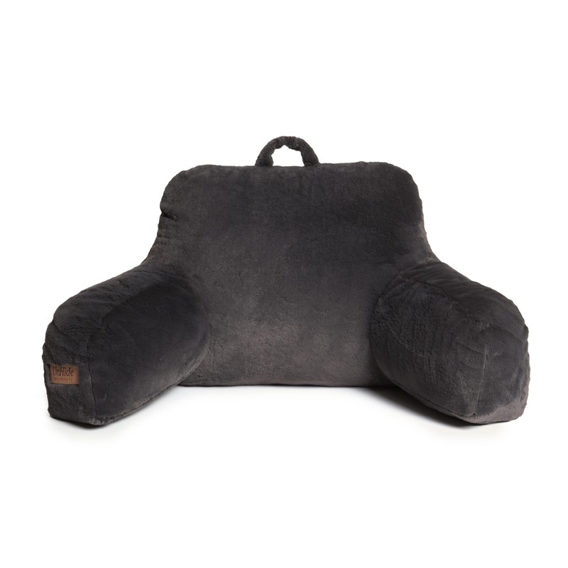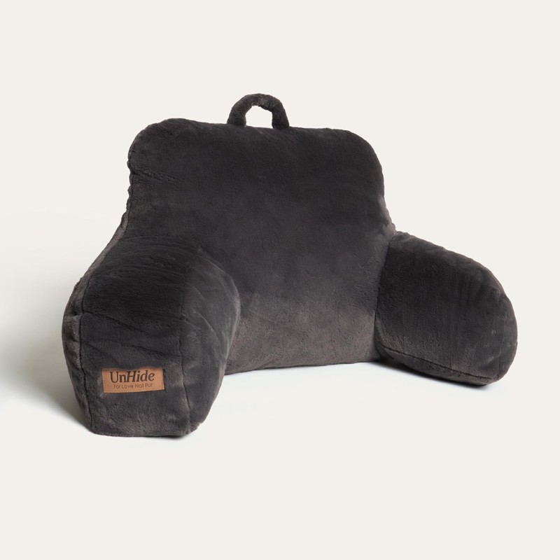 UnHide Squish Backrest Pillow - A Large Pillow with Arms for Sitting Up in Bed, Reading or Lounging - Removable, Washable Faux Fur Cover, Charcoal