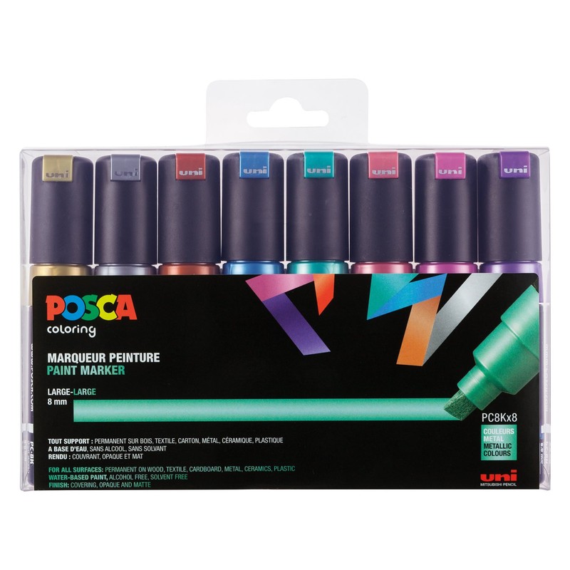 uni-ball 182609 - Posca Marker with Wide Chisel Tip, Set of 8, Metallic