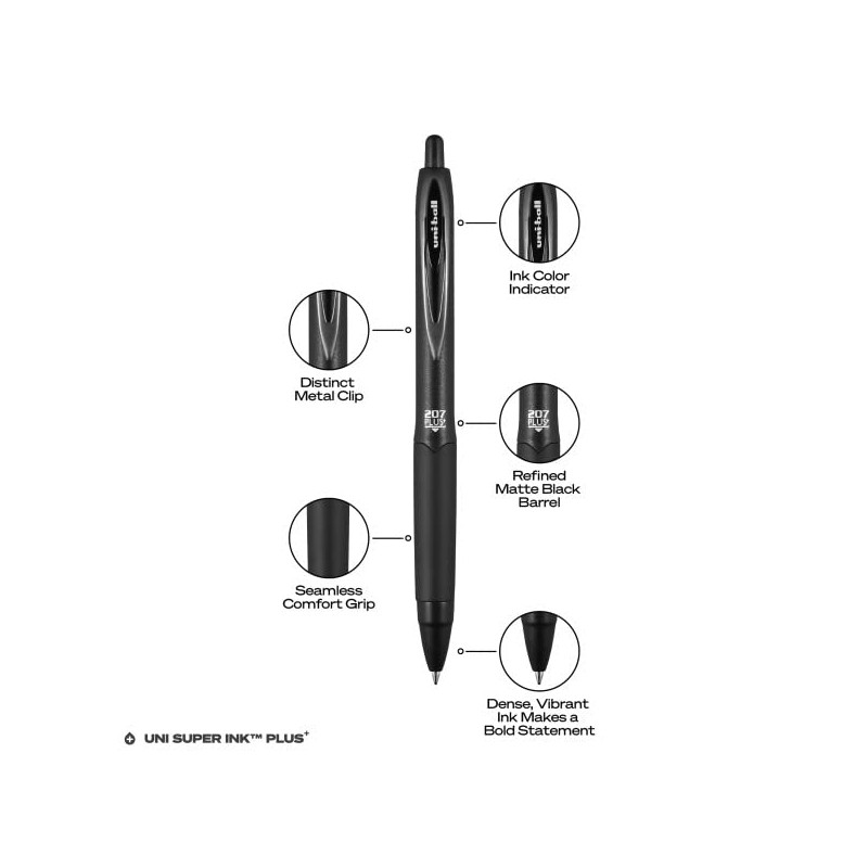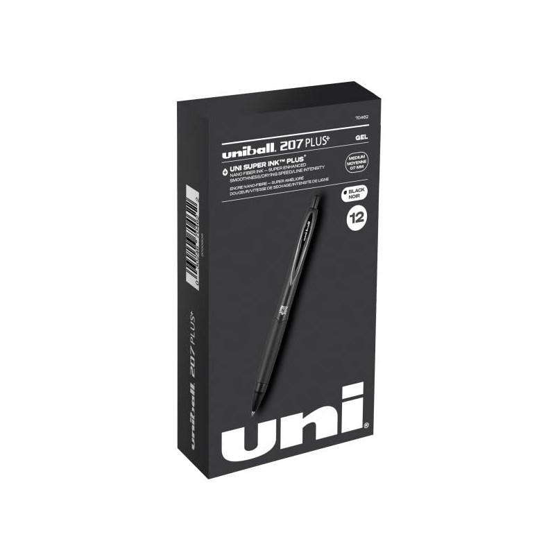 uni-ball 207 Plus+ Retractable Gel Pens 12 Pack in Black with 0.7mm Medium Point Pen Tips - Uni-Super Ink+ is Smooth, Vibrant, and Protects Against Water, Fading, and Fraud