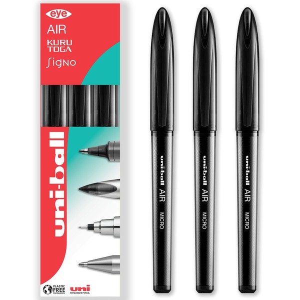 uni-ball AIR Micro - 0.5mm Fine Rollerball - UBA-188-M - In Gift Box Packaging (Pack of 3, Black)