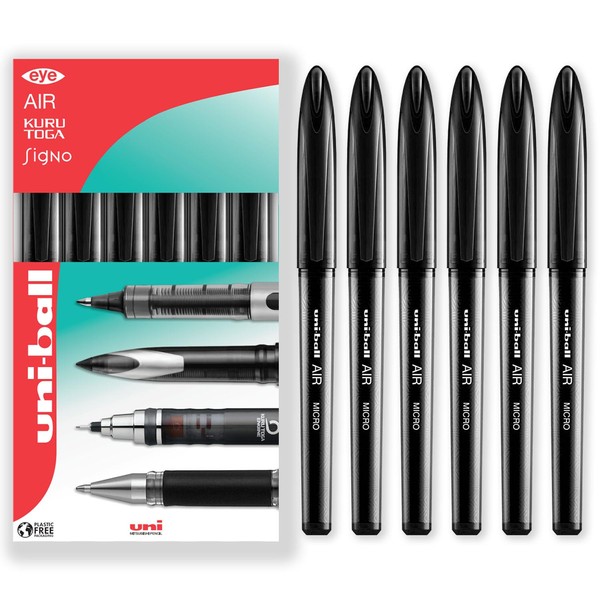uni-ball AIR Micro - 0.5mm Fine Rollerball - UBA-188-M - In Gift Box Packaging (Pack of 6, Black)