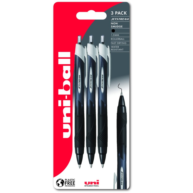 uni-ball Jetstream Sport SXN-150S Ballpoint Gel Pens. Premium 1.0mm Rollerball Tip. Smooth Writing Black Uni Super Ink Dries Instantly. Pack of 3 in Plastic Free Packaging