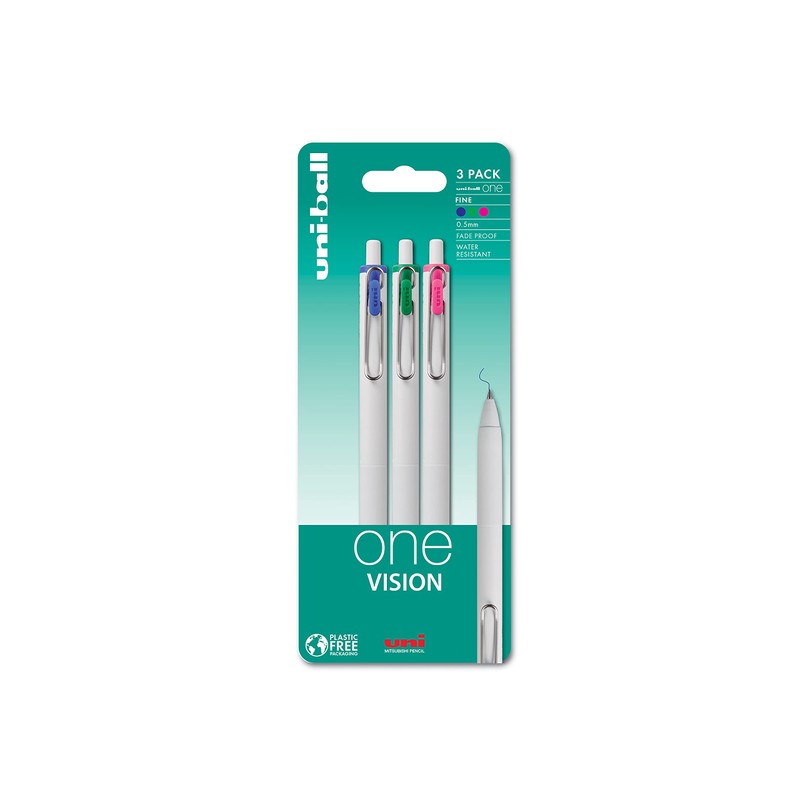 uni-ball On Point One Vision Writing Gel Pens 3 Pack in Blue, Green and Pink