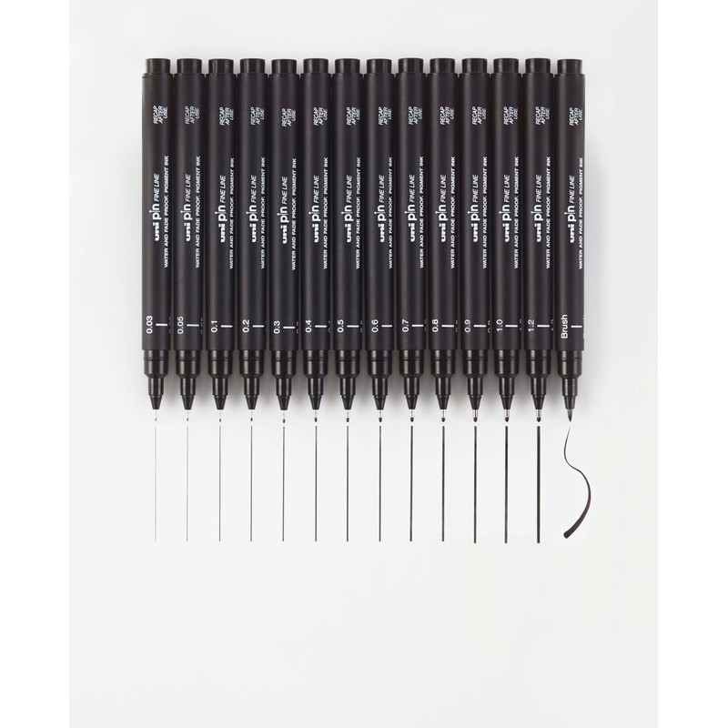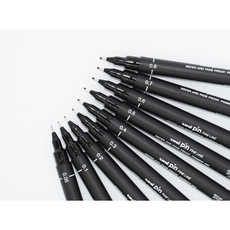 Uni-Ball Pen Case 8 Pack Calibrated Markers 0.03 to 1.2mm Black Classic Set I