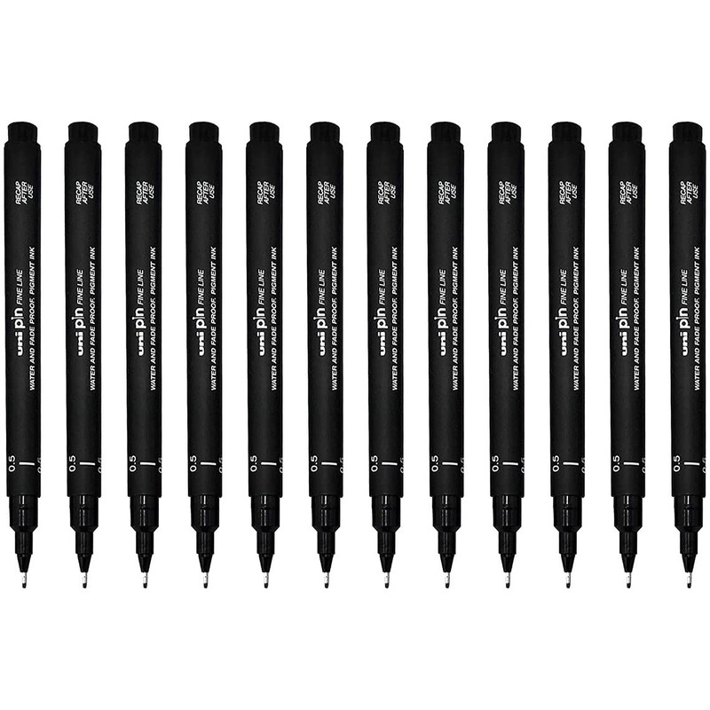 uni-ball Pin Black Technical Drawing Marker Pen 0.5mm - Box of 12 Pens