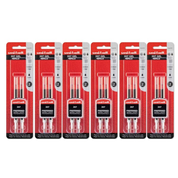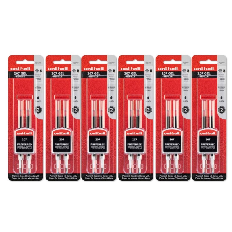 Uni-Ball Signo 207 Gel Pen Refills, 0.7mm, Medium Point, Black Ink, Pack of 12