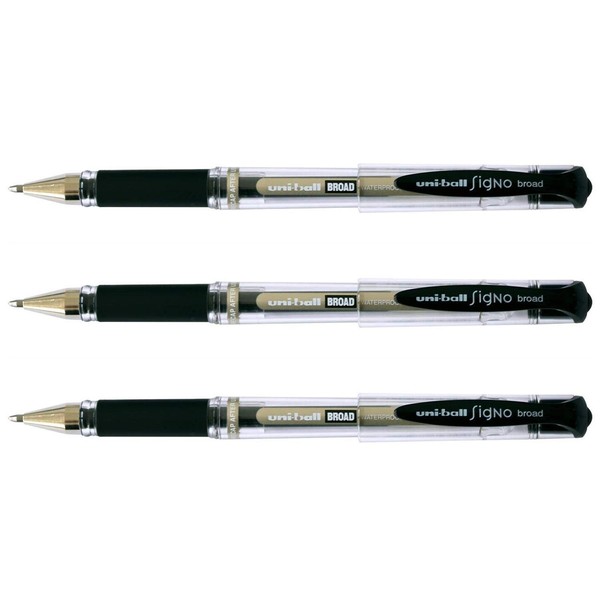 uni-ball Signo Broad UM153C Gel Ink Rollerball Pen 1mm Wide Tip - Black (Pack of 3)