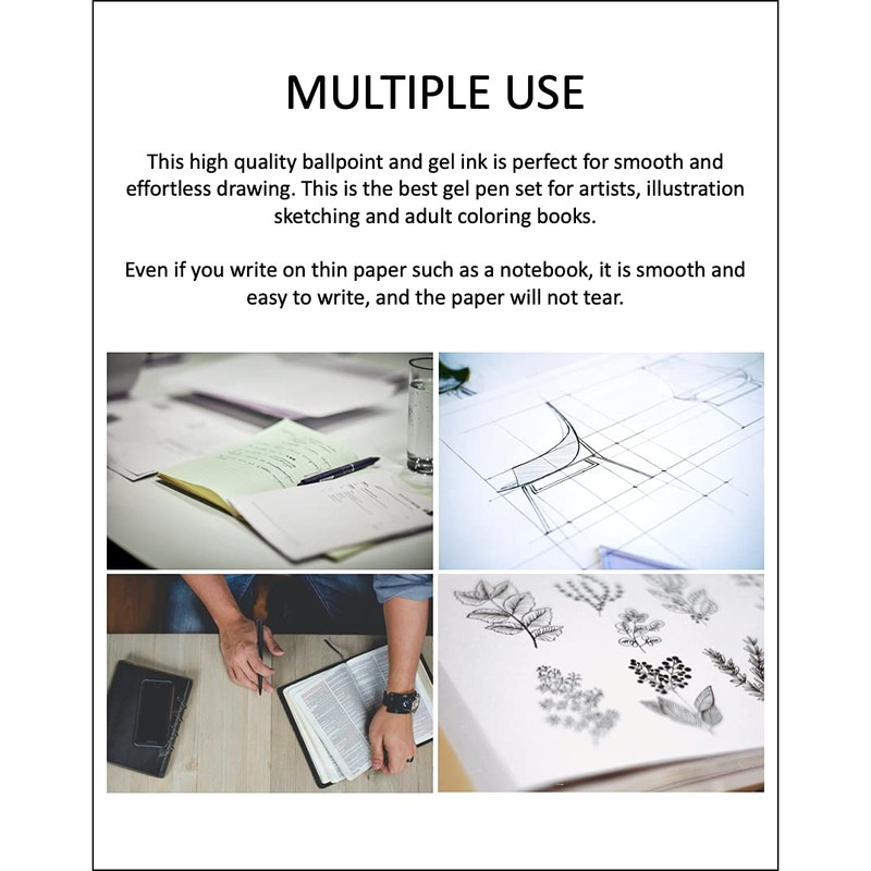 - 🖊 ACID FREE AND NON TOXIC: This pen has a rubber grip for comfortable use. One unique thing about this pen is that it has more ink than any gel pen and sakura gelly roll pen. Durable design that does not break even if dropped and does not leak liquid. It uses a stainless steel tip with excellent toughness and a spring tip mechanism to prevent direct current ink.