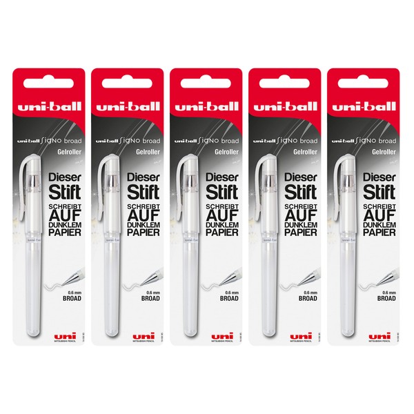 uni-ball Signo UM-153 205038 Gel Pen Set, 5 Pieces, White, 0.6 mm Tip