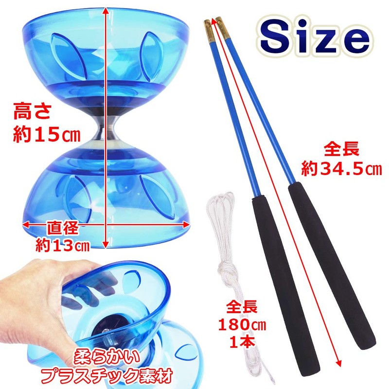 - (Size) Body: Diameter: Approx. 5.1 inches (13 cm); Height: Approx. 5.9 inches (15 cm); Stick: Length: Approx. 13.6 inches (34.5 cm); *Stick colors and string colors are assorted