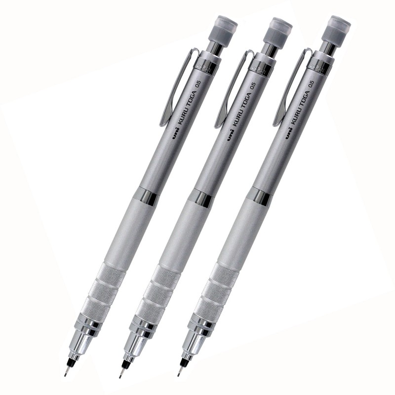 - Uni Kuru Toga Roulette Auto Mechanical Pencil, 0.5mm, Gun Metallic Silver, Pack of 3