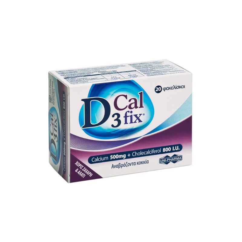 Uni-Pharma D3 Cal Fix is a dietary supplement with calcium and vitamin D3 (cholecalciferol) in its bioavailable form, for the health of bones, teeth and the strengthening of the immune system.