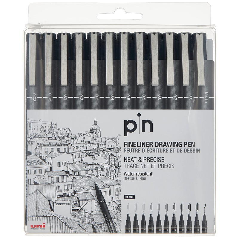 - UNI PIN FINELINER DRAWING PEN SET 12 BLACK