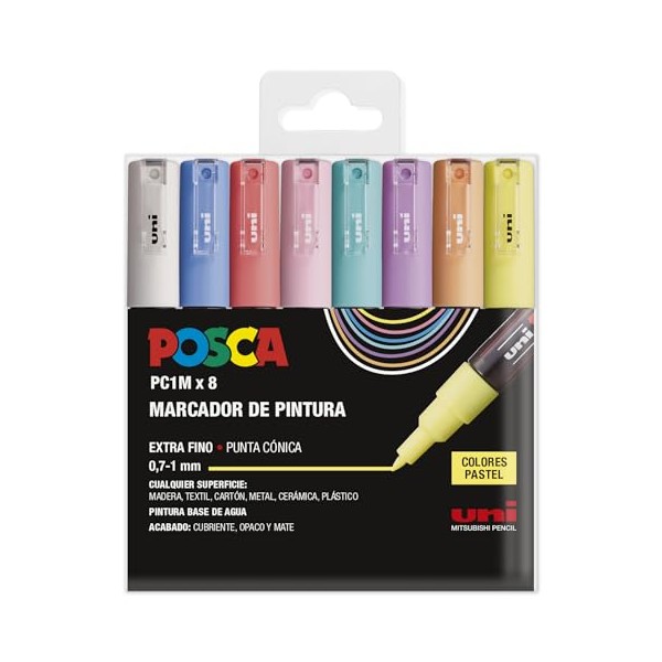UNI Posca PC1M Pastel Conical Extra Thin 8 Marker Pen Case
