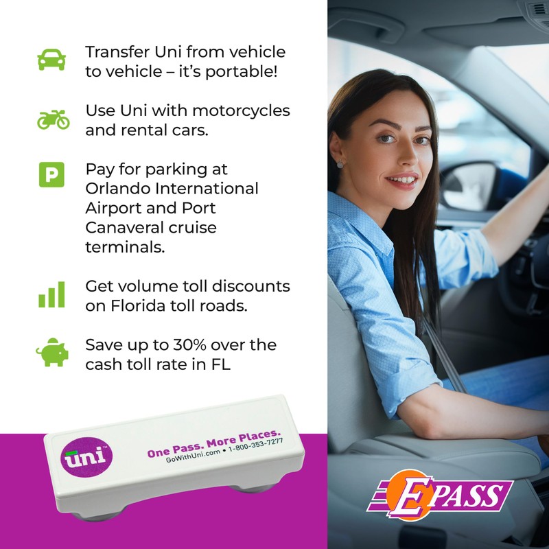 Uni Prepaid Portable Toll Pass by E-PASS – Works in 19 States Including FL, G...
