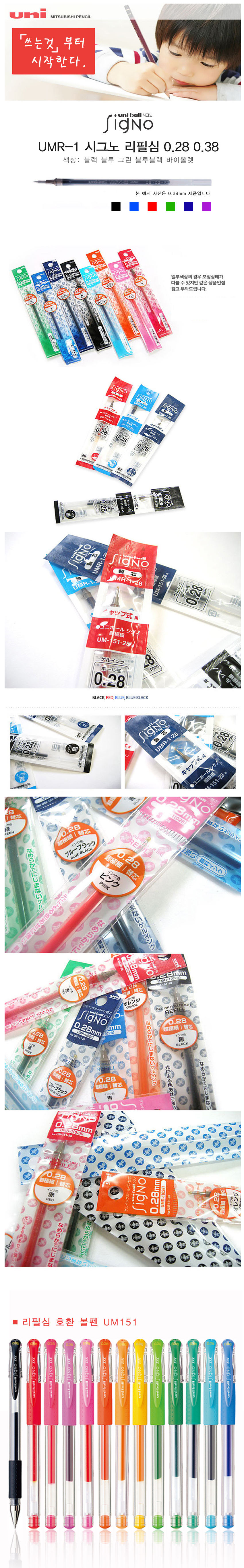 Uni Signo UM-151 Capped Ballpoint Pen Refill UMR-1 / 유니 시그노 UM-151 캡식 볼펜 리필심 UMR-1