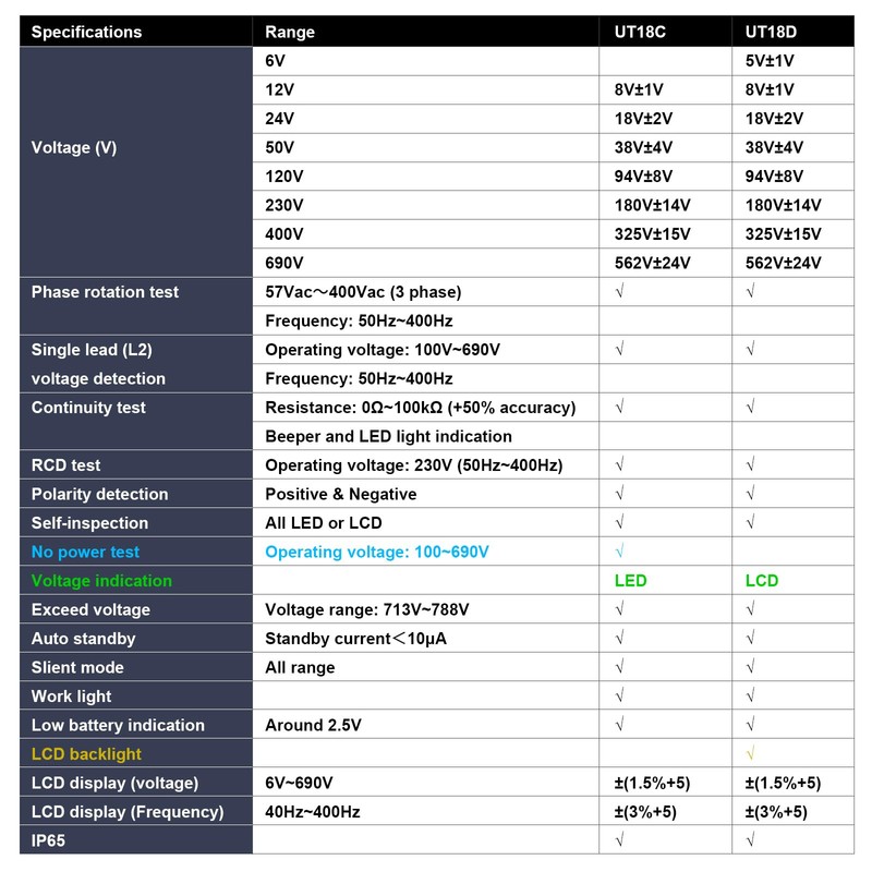 UNI-T UT18D Probador de Voltaje y Continuidad Detectores de Voltios de Rango Automático Pen Date Hold/LED/LCD Display Multímetro Digital
